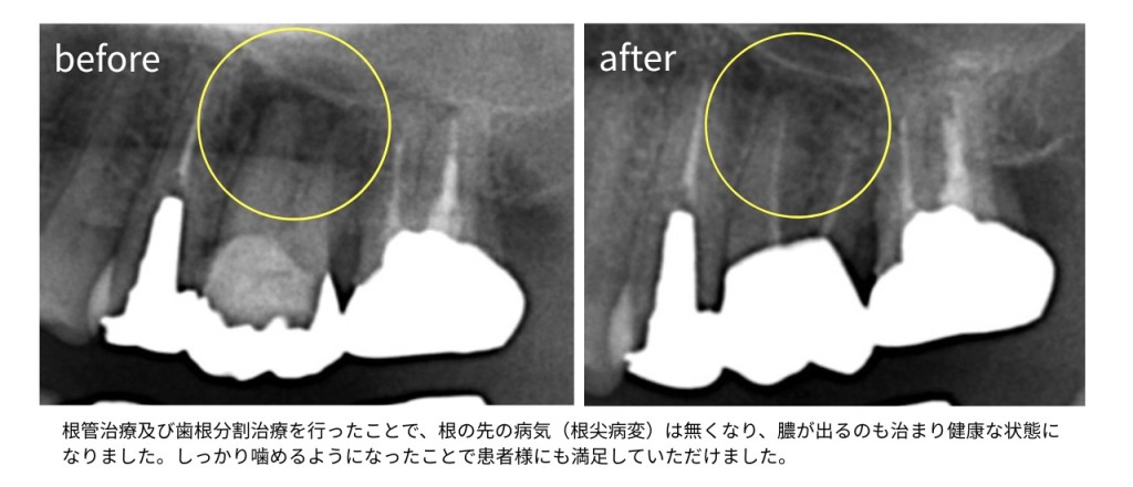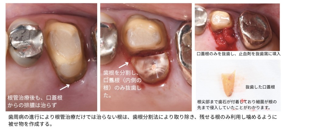 問題の1本の根だけを取り除き、残りの根で歯を支える方法です。