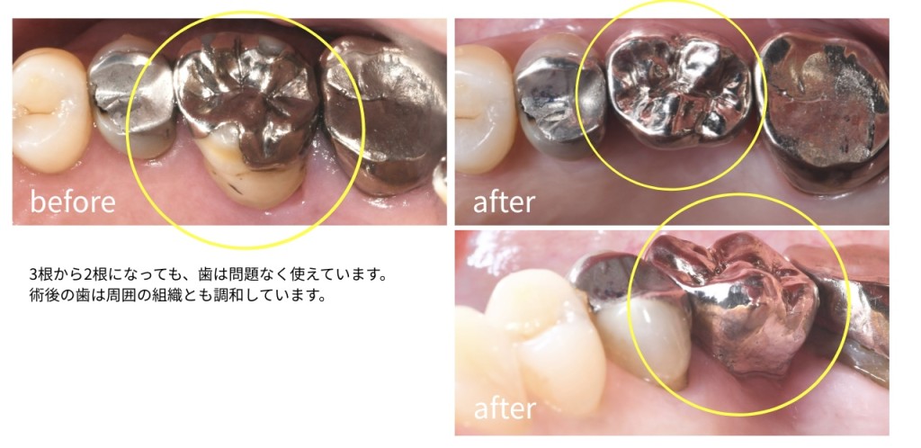 しかし、歯周病は3本ある根のうち1本に限局していました。